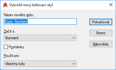 Zobrazí dialog Nový kótovací styl, kde můžete definovat vlastnosti nového kótovacího stylu.