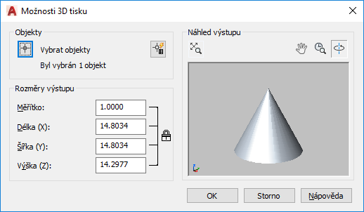 Vytvoří soubor STL, který je možné odeslat do služby 3D tisku.