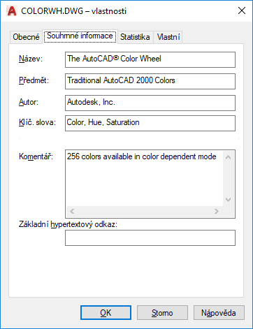 Určuje titulek, pomocí kterého můžete tento výkres vyhledávat. Titulek může být odlišný od názvu souboru.