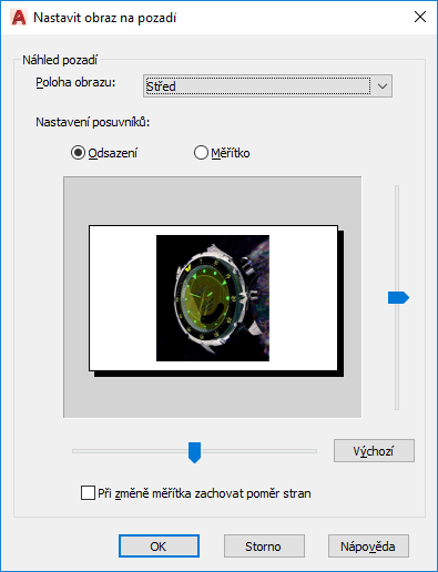Udává měřítko obrázku (není dostupné, je-li poloha obrázku nastavena na Protažení).