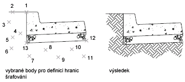 - Jakmile bude definována šrafovaná oblast, zrušte zadáním možnosti n křivkovou hranici.