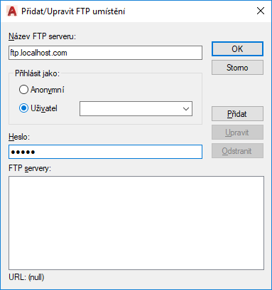 Určuje jméno serveru pro FTP umístění (například ftp.autodesk.com).