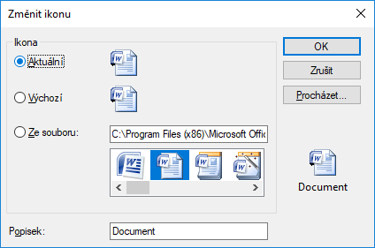 Zobrazí dialog Procházet (standardní dialog pro výběr souboru), ve kterém můžete vybrat ikonu ze souboru.