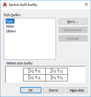 Zobrazí všechny styly buněk v rámci aktuálního stylu tabulky a umožní vytvořit nebo odstranit styl buňky.