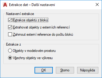 Zahrne všechny objekty v modelovém a výkresovém prostoru ve výkresu včetně informací o výkresu. Standardně zapnuto.