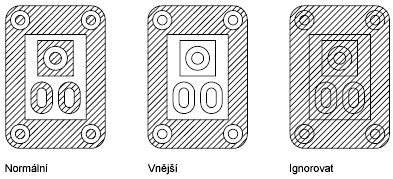 Uzavřené oblasti nebo textové objekty uvnitř hranic šrafování jsou považovány za ostrůvky.