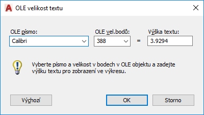 Měřítko OLE objektu je změněno automaticky a bude přizpůsobeno velikosti textu.