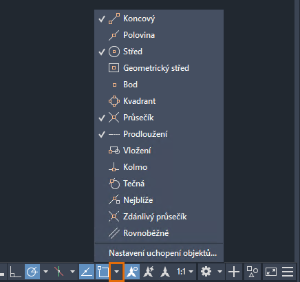 Klikněte pravým tlačítkem na kartu Model nebo Rozvržení a vyberte možnost Ukotvit nad stavový řádek nebo Ukotvit na úrovni stavového řádku.