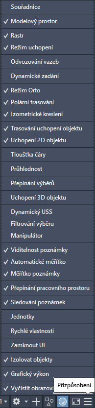 Nabídku zavřete opětovným kliknutím na tlačítko Přizpůsobení nebo na kreslicí ploše.