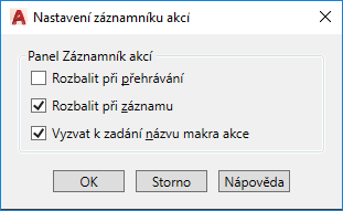 Přizpůsobuje použitá nastavení nástroje Záznamník akcí.
