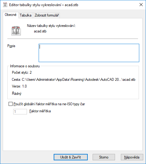 Upraví měřítko všech ne-ISO typů čar a vzorů výplně objektů ve vykreslovacím stylu, které jsou řízeny touto tabulkou stylů vykreslování.