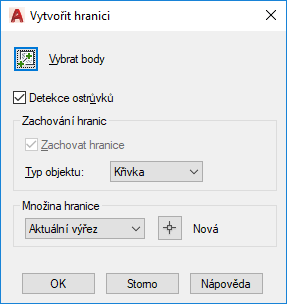 Určuje typ nového hraničního objektu. Příkaz HRANICE vytvoří hranici jako oblast nebo objekt typu křivka.