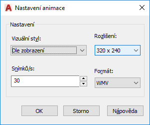 Nastavuje možnosti pro záznam animace 3D navigace.