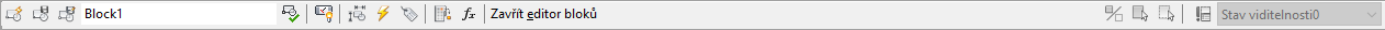Panel nástrojů Editor bloků se zobrazuje tehdy, není-li zapnut pás karet. Zobrazuje se také tehdy, zadáte-li příkaz ke spuštění nástroje Editor bloků v době, kdy je pás karet vypnut.