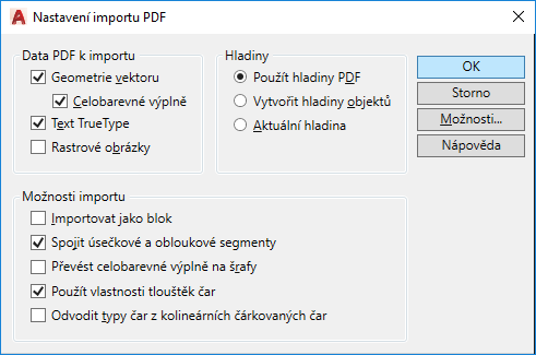 -PDFIMPORT (příkaz): Nastavení