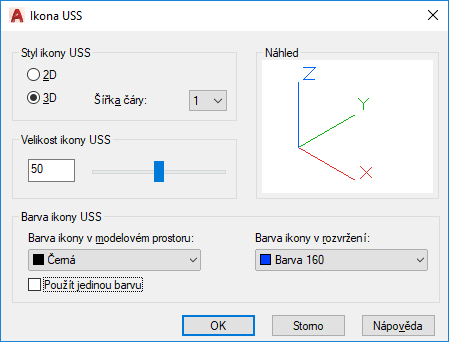 Řídí barvy ikony USS ve výřezech modelového prostoru a na kartách rozvržení.