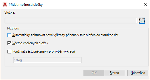 Při procesu extrakce dat zahrne výkresy ve složkách vnořených do vybraných složek.