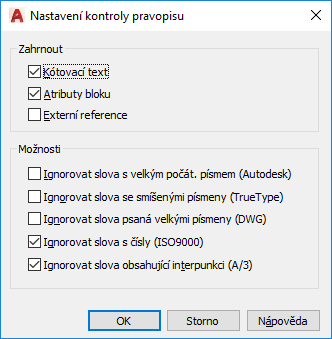 Určuje specifické možnosti textu, které budou ve výkresu kontrolovány.