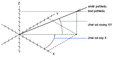 Směr pohledu lze definovat zadáním hodnot souřadnic bodů nebo dvou úhlů natočení.