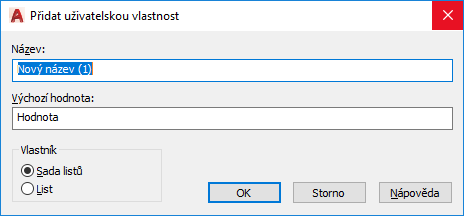 Vytvoří uživatelskou vlastnost, která bude asociována s aktuální sadou listů nebo s každým listem.