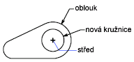 Následující příklad použije hodnotu rad s příkazem KRUŽNICE. Poloměr nové kružnice má hodnotu dvou třetin poloměru vybrané obloukové části křivky: