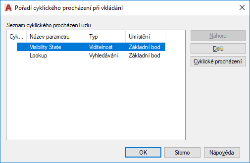 Určuje pořadí cyklického procházení uzlů, které by mohly být použity jako body vložení reference dynamického bloku.