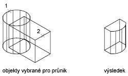 Pomocí příkazu PRŮNIK můžete vytvořit složený objekt ze společného objemu nebo povrchu dvou nebo více překrývajících se objektů. Příkaz PRŮNIK slouží k odebrání částí, které se nepřekrývají, a k vytváření složeného objektu z jejich zbytků.