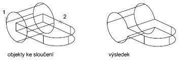 Pomocí příkazu SJEDNOCENÍ lze sloučit celkový objem nebo povrch dvou nebo více objektů.