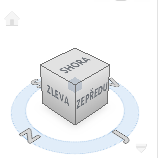 Kompas se zobrazuje pod nástrojem ViewCube a označuje směr, ve kterém je v modelu definován sever. Kliknutím na písmeno světové strany na kompasu můžete model otočit nebo kliknutím a přetažením kroužku kompasu interaktivně otáčet modelem kolem bodu otáčení.