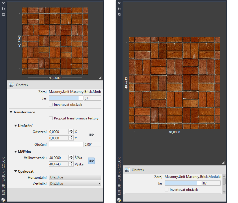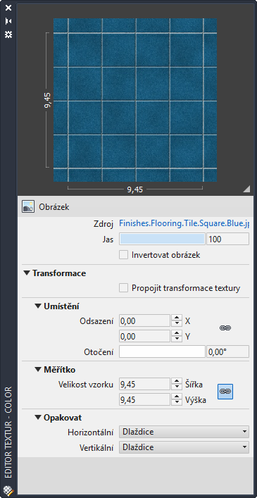 | Typ textury | Pozice | Změna měřítka | Opakovat |