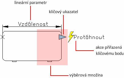 Akce definují, jak se geometrie reference dynamického bloku přesune nebo změní, když bude manipulováno s jeho uzly.