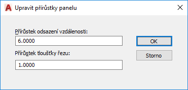 Pokud pro možnost Přírůstek vzdálenosti odsazení nastavíte například hodnotu 6.0000, jedním kliknutím na šipku nahoru v ovládacím prvku Odsazení řezu zvýšíte jeho hodnotu o 6.0000 bodů.