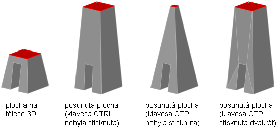 - Posunout plochu. Při posunutí plochy a stisknutí a uvolnění klávesy Ctrl při tažení se poloha plochy změní v rámci hranice, neboli průmětu, přilehlých ploch.