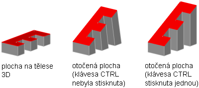 - Prodloužení přilehlých ploch. Při přetažení nebo otočení plochy bez stisknutí klávesy Ctrl budou tvar a velikost plochy zachovány. Roviny přilehlých ploch se však mohou změnit.