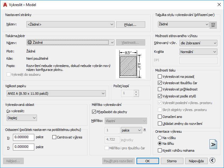 Dříve bývalo zvykem tisknout text na tiskárnách a vykreslovat výkresy na plotrech. Nyní můžete provést obojí u obou možností. Tato příručka tedy bude používat pojmy tisk a vykreslení pro oba postupy.