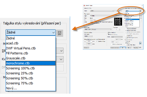 Tabulka stylu vykreslování poskytuje informace o zpracování barev. Barvy, které na monitoru vypadají dobře, nemusejí být vhodné pro soubor PDF nebo pro tisk. Můžete například vytvořit barevný výkres, ale černobílý výstup. Následující postup slouží k určení černobílého výstupu: