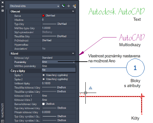 Objekty poznámek obsahují kóty, poznámky a další typy vysvětlujících symbolů nebo objektů, které jsou běžně používány k přidávání informací k výkresu.