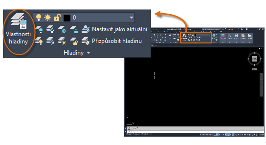 Pokud chcete zjistit, jak je výkres uspořádán, otevřete příkazem HLADINA Správce vlastností hladiny. V příkazovém okně zadejte příkaz HLADINA nebo zkratku HL, nebo můžete na pásu karet kliknout na nástroj Vlastnosti hladiny.