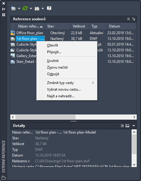 Jestliže má vámi vytvořená reference připojené externí reference nebo definice bloků, reference a její vnořené reference jsou zobrazeny v dialogu Editovat referenci, kde ji můžete vybrat. Vnořené reference jsou zobrazeny pouze tehdy, když je vybraný objekt součástí vnořené reference. Upravovat můžete najednou pouze jednu referenci. Jestliže upravujete referenci, která obsahuje objekty OLE, jsou objekty OLE zobrazeny, nelze je však upravovat.