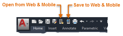 Pokud si myslíte, že potřebujete přístup k výkresu ze vzdáleného umístění, zkuste použít příkazy Uložit do služby Web and Mobile a Otevřít ze služby Web and Mobile.