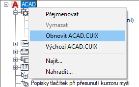Poznámka: Resetovat lze pouze soubory CUIx nacházející se ve složce UserDataCache v umístění instalace aplikace.