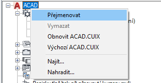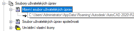 - V aplikaci Windows Explorer nebo v prohlížeči souborů přejděte na položky<jednotka>:\Users\<název uživatelského profilu>\AppData\Roaming\Autodesk\<název produktu>\<číslo verze>\<jazyk>\support\<název souboru uživatelských úprav>.cuix.