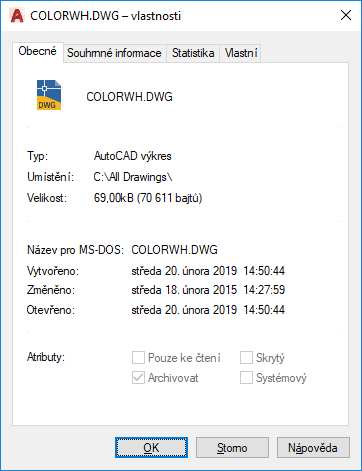Zobrazí informace o souboru výkresu jen pro čtení, které jsou odvozeny z operačního systému.