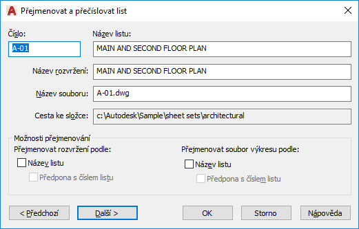 Pokud je tato možnost zaškrtnuta, změní se název rozvržení na nový název vytvořený přidáním čísla listu na začátek názvu listu.