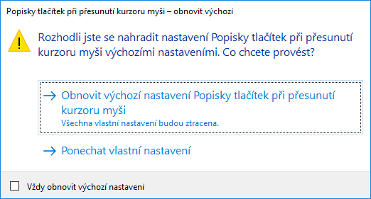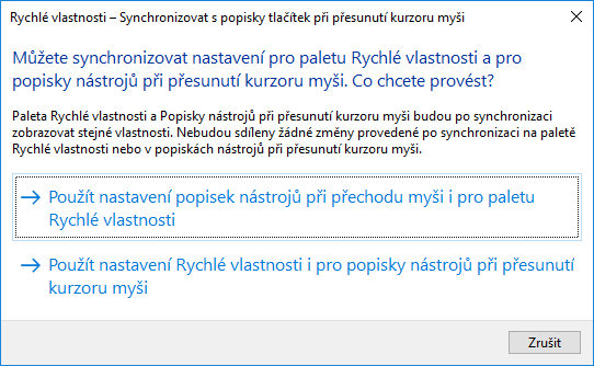 Vlastnosti zaškrtnutých typů objektů se budou zobrazovat v popisku při přesunutí kurzoru, když bude kurzor umístěn nad objektem daného typu. Chcete-li zrušit podporu popisků nástrojů při přesunutí kurzoru pro určitý typ objektů, zrušte zaškrtnutí políčka u daného typu.
