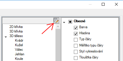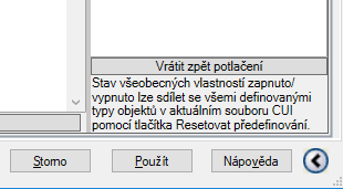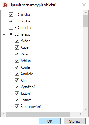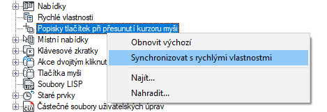 Je-li označena vlastnost, vlastnosti se budou zobrazovat v popisku při přesunutí kurzoru, když bude kurzor v okně výkresu umístěn nad objektem daného typu. Chcete-li odebrat vlastnost zvoleného typu objektů, zrušte zaškrtnutí políčka u dané vlastnosti.