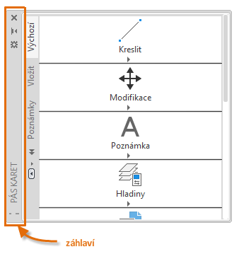 - Klikněte na záhlaví pásu a přetáhněte uvolněný pás karet k levému okraji, k pravému okraji nebo do horní části kreslicí plochy.