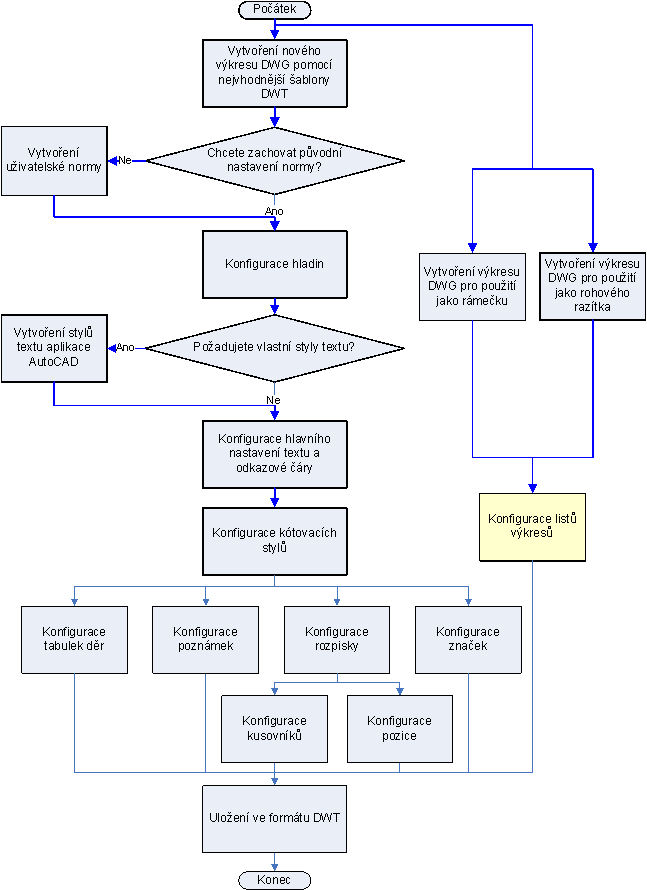 Proto si společnost v rozevírací seznamu „Rohové razítko“ vybere podnikové rohové razítko Company TB.dwg. V rozevíracím seznamu „Formát papíru“ jsou dostupné rámečky A4L (A4 na šířku), A4P (A4 na výšku), A3, A2 a A1.dwg, které si společnost vybere jako rámečky podnikových výkresů.