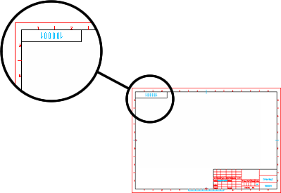 Vložit blok s převráceným číslem výkresu Umístí rámeček obsahující číslo součásti úhlopříčně proti rohovému razítku. Číslo součásti je umístěno jako svisle převrácené, takže je snadno čitelné při pohledu z horního okraje výkresu. ![]() |