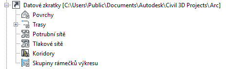 Výchozí pracovní složka projektů datových zkratek je C:\Users\Public\Documents\Autodesk\Civil 3D Projects. Výchozí pracovní složka se používá také pro projekty aplikace Autodesk Vault a pro místní projekty (nikoli projekty aplikace Vault) aplikace Survey.